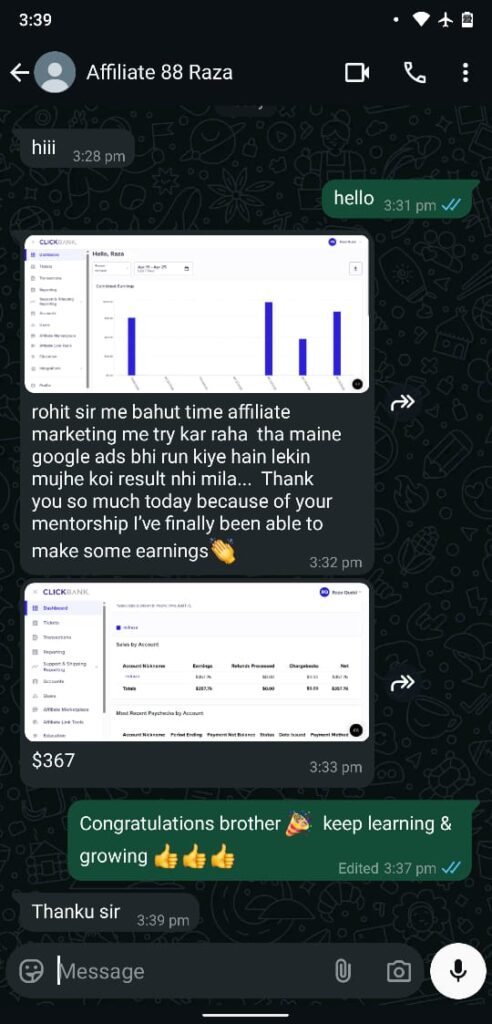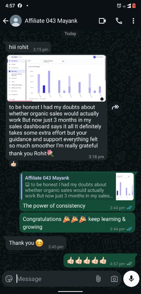 At just 22, Rohit, a college dropout, began his online journey in 2022. With a strong grip on affiliate marketing, he quickly scaled it into a full-time pursuit. Generating over $40,000 in gross sales and founding DigitalDynamo, Rohit’s journey is nothing short of inspiring. But he’s not here to keep it all to himself—Rohit’s passion lies in lifting others up. Through his mentorship, he’s already guided many to similar wins. This year, his mission is clear: empower 1,000 students to master affiliate marketing and create their own success stories